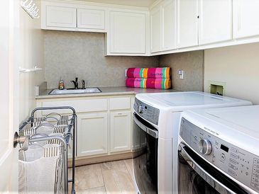Create family meals in a beautiful gourmet kitchen complete with granite counter tops and breakfast bar. Fully equipped with warming drawer, dinnerware, flatware, serveware, cookware, pantry and kitchen appliances for all your culinary needs.