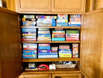 The Family Room game & puzzle cabinet is filled with fun for all ages!